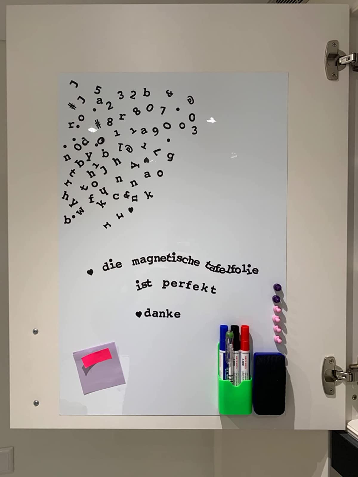 ✓ Die Tafelfolie ist ausschließlich für den Gebrauch mit Magneten bestimmt! – Bitte benutze keine Pinnwandnadeln zur Befestigung Deiner Notizen, Postkarten oder Briefe.