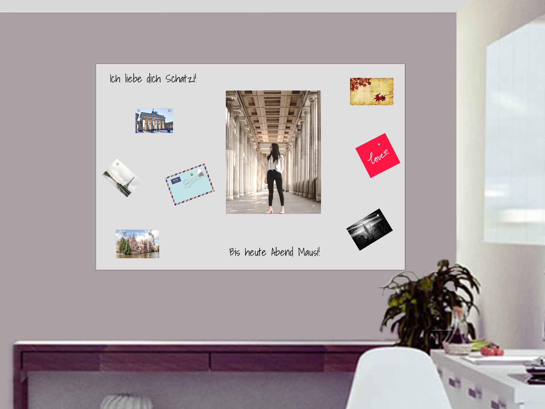 Die Tafelfolie ist ausschließlich für den Gebrauch mit Magneten bestimmt! – Bitte benutze keine Pinnwandnadeln zur Befestigung Deiner Notizen, Postkarten oder Briefe.