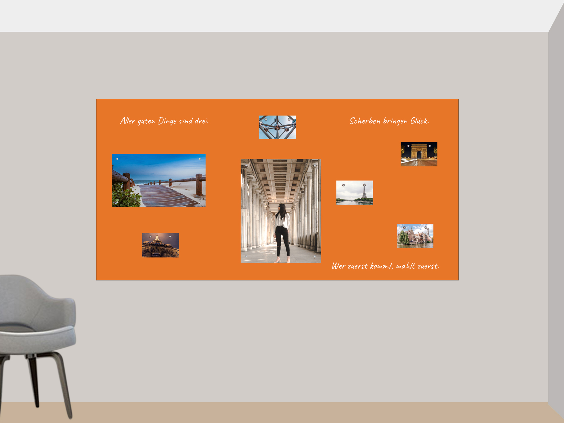 ☞ TIPP: Wenn Du nicht sicher bist ob die Folie mit der gesamten Klebefläche fest an der Wand angebracht werden kann, klebe die Folie auf eine Platte und bringen diese an die Wand an – das hat gleichzeitig den Vorteil das die selbstklebende Folie auch mal an einer anderen Stelle installiert werden kann. Wir empfehlen dafür Platten aus Kunststoff, AluDibond, Acrylglas oder Holz. Diese findest Du kostengünstig in jedem Baumarkt.